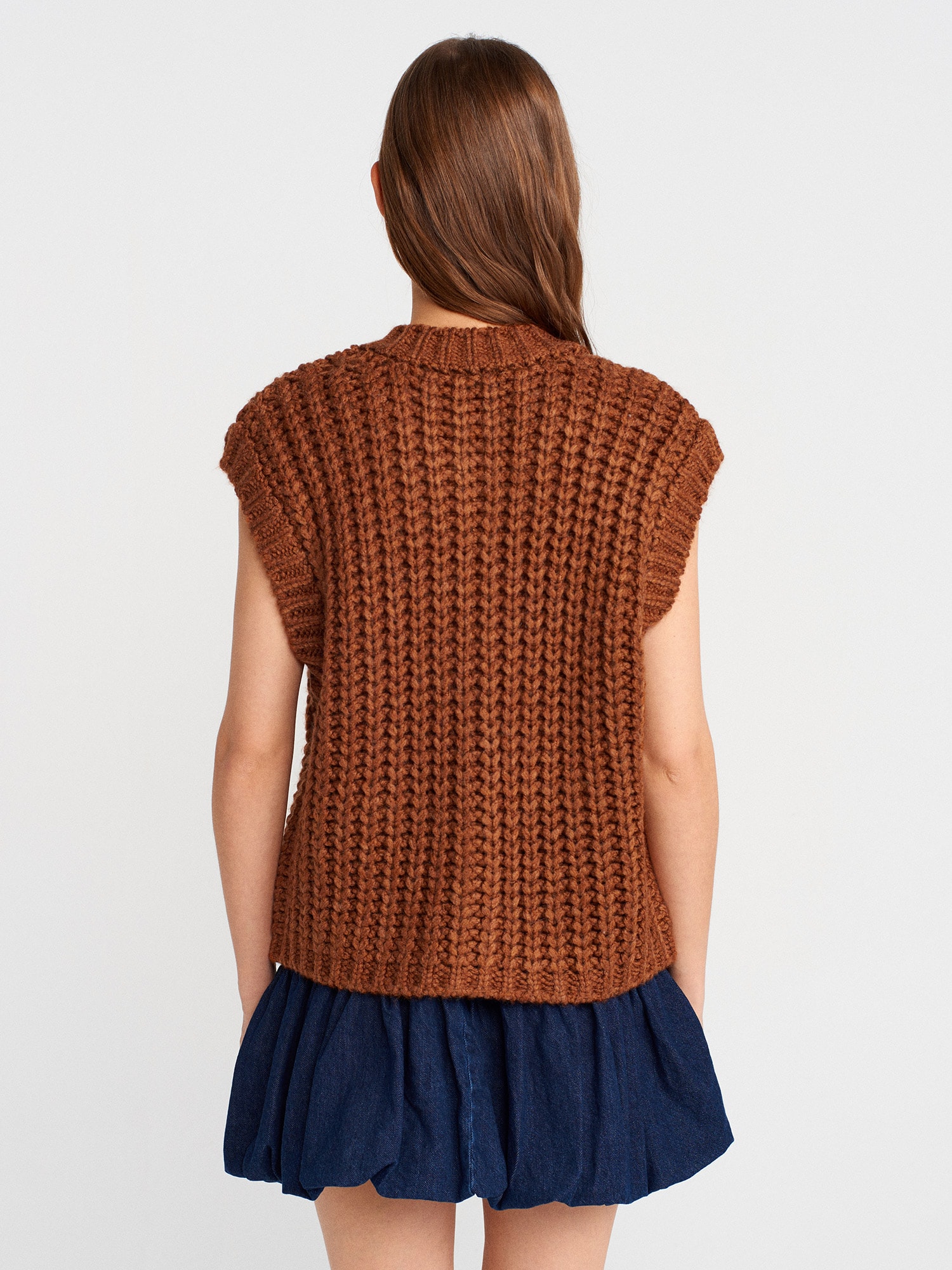 Bisiklet Yaka Kol Ortası Droplu Kazak Koyu Kahve