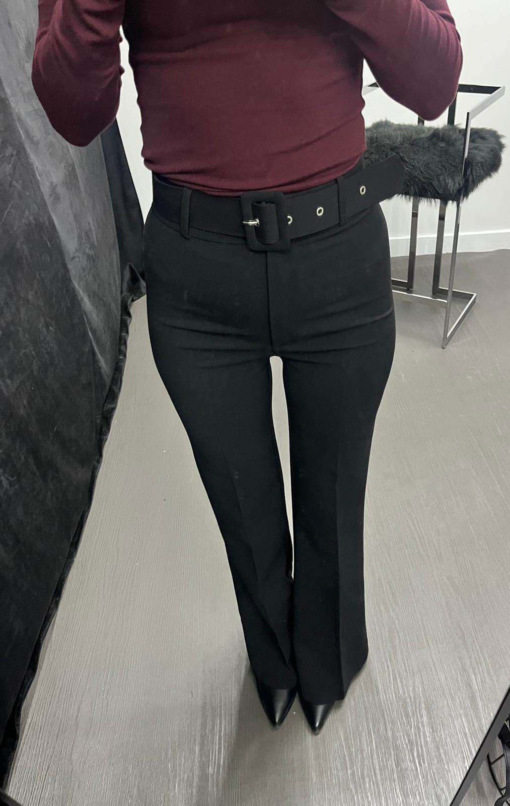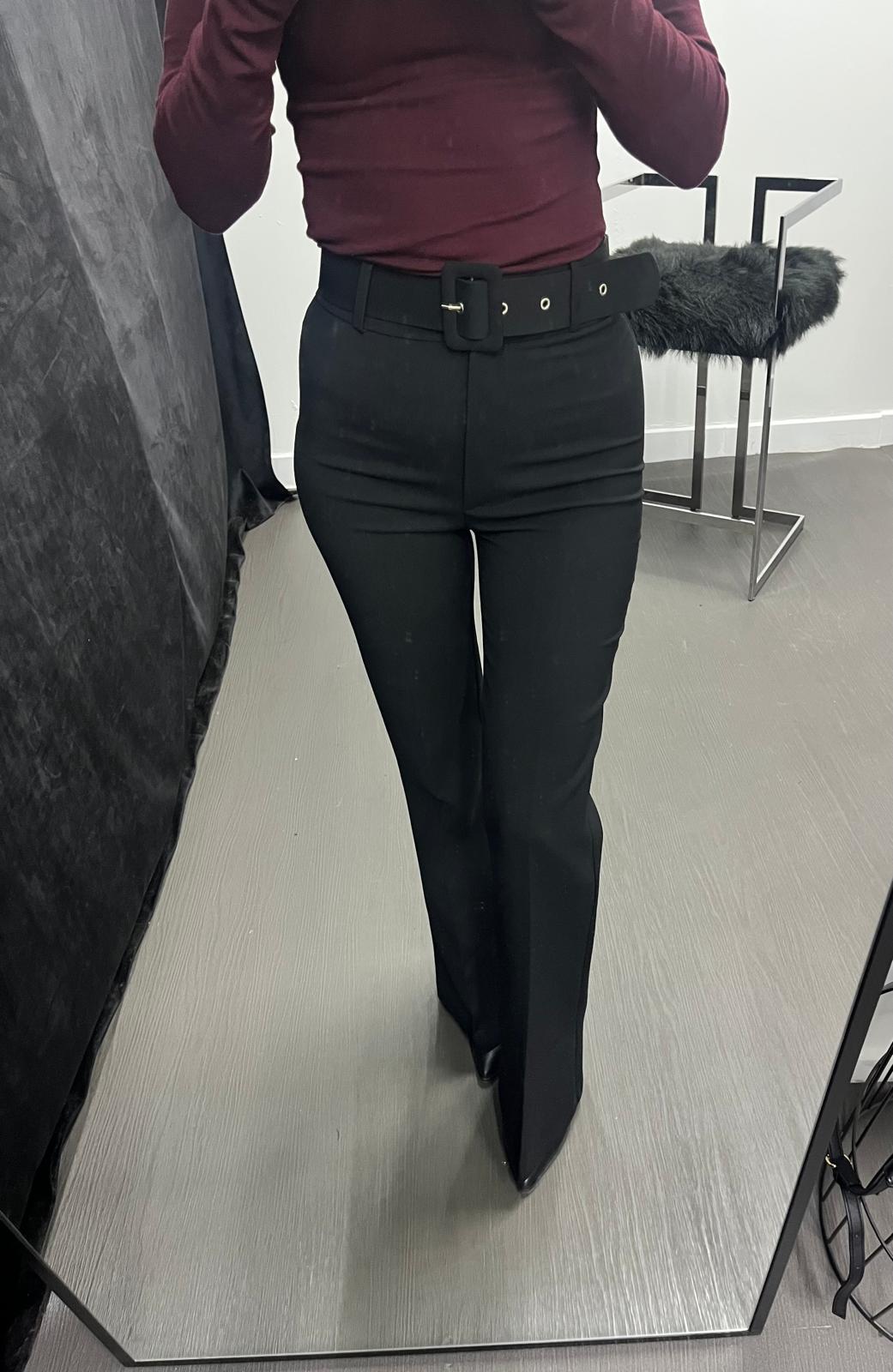 Kemerli İspanyol Paça Pantolon Siyah