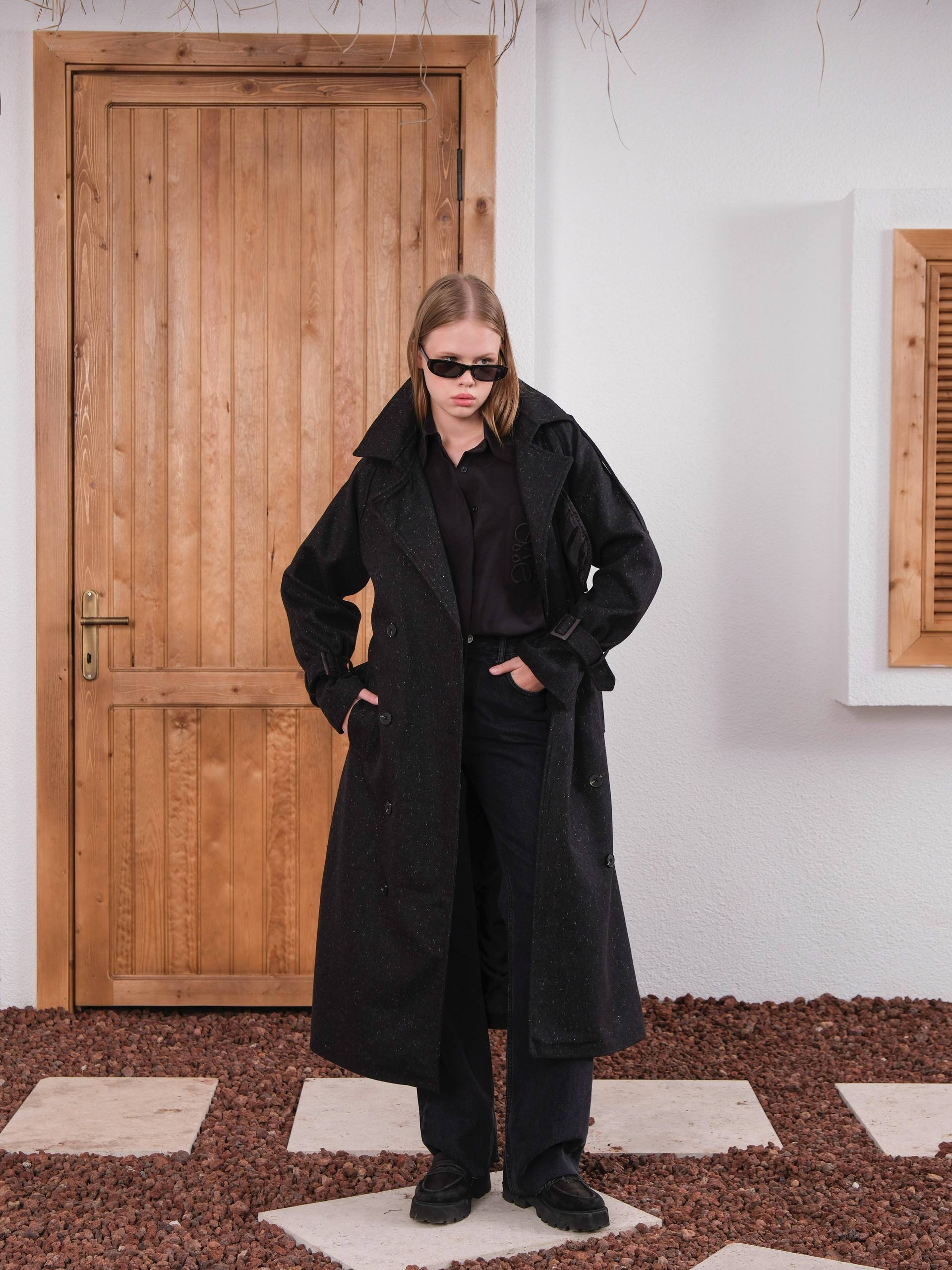 Bisiklet Yaka Pullu Simli Düğmeli Triko Hırka Füme